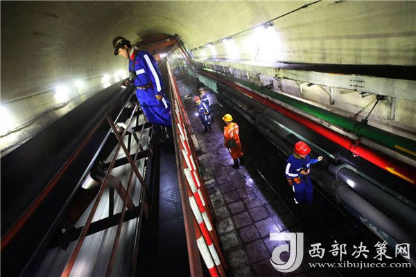 井下工人正在巡檢運轉的皮帶