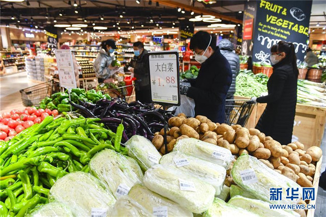 市民在黑龍江省哈爾濱市一家大型超市內挑選蔬菜(2月4日攝)。新華社記者 王建威 攝