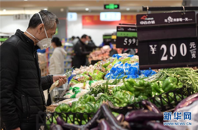 2月10日,顧客在湖北省武漢市江漢區(qū)中百倉儲超市北湖購物廣場店選購低價蔬菜。 新華社記者 李賀 攝