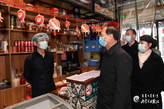 3月12日,自治區(qū)黨委書(shū)記、人大常委會(huì)主任石泰峰隨機(jī)走進(jìn)一家臨街餐館,檢查防疫措施,詢問(wèn)員工返崗和營(yíng)業(yè)情況。 內(nèi)蒙古日?qǐng)?bào)社融媒體記者 袁永紅 攝