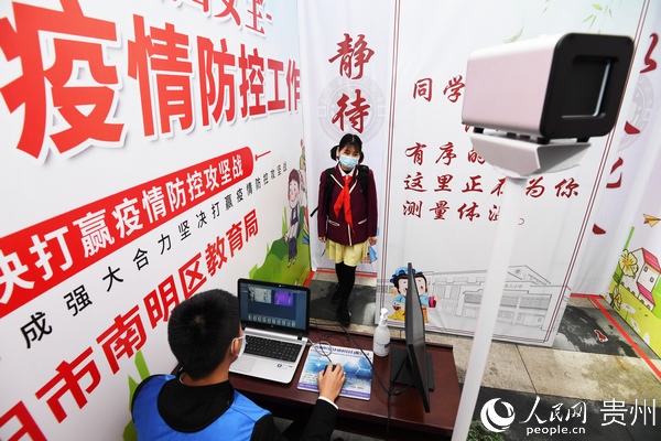 “學生進校之前,要對學生和全體教職員工建起一人一檔的健康檔案,了解學生和他的家庭成員以及親密接觸人員的健康狀況,進行逐一排查。到學生進校的時候,對每一位學生,每一位教職員工都要進行體溫檢測,還要讓他們掃‘貴州健康碼’,了解學生的行蹤和健康狀況,保障學生在學校里面健康學習。”宋旗學校校長陳孝勇說。