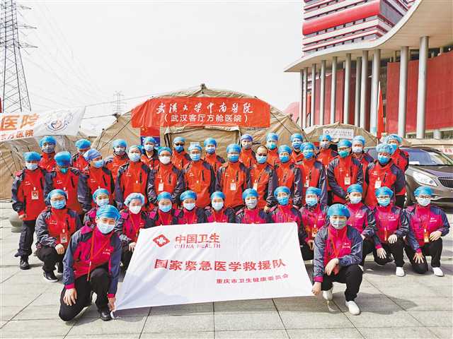 重慶市第四批支援湖北醫(yī)療隊又名重慶市國家緊急醫(yī)學救援隊,由39名隊員組成,隨隊還有藥械車、普通門診車、特檢車、油電車等裝備。全隊于2月5日抵達武漢,先后完成在東西湖方艙和沌口方艙的全部醫(yī)療任務。3月8日,隨著沌口方艙休艙,醫(yī)療隊的工作暫時告一段落,于駐地休整待命。