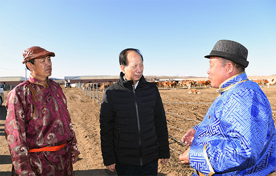 3月23日,自治區(qū)黨委書記、人大常委會(huì)主任石泰峰來(lái)到赤峰市克什克騰旗達(dá)來(lái)諾日鎮(zhèn)崗更嘎查西門塔爾牛養(yǎng)殖專業(yè)合作社,了解帶動(dòng)已脫貧戶穩(wěn)定長(zhǎng)效增收情況。內(nèi)蒙古日?qǐng)?bào)社融媒體記者 袁永紅 攝