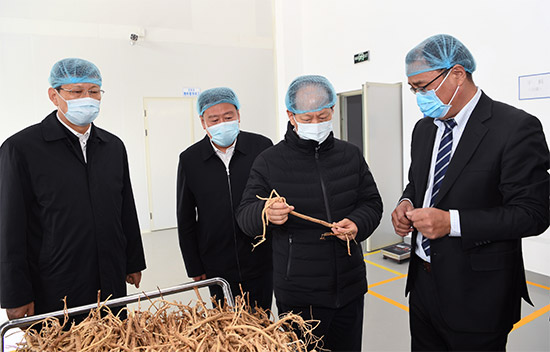 實(shí)現(xiàn)穩(wěn)定脫貧,發(fā)展產(chǎn)業(yè)是根本之策。石泰峰深入佰惠生新農(nóng)業(yè)、恒光大藥業(yè)、德青源農(nóng)業(yè)、宏發(fā)牧業(yè)、安琪酵母、恒都農(nóng)業(yè)等企業(yè)和部分專業(yè)合作社,考察特色產(chǎn)業(yè)發(fā)展、農(nóng)企利益聯(lián)結(jié)及帶貧促貧成效。當(dāng)?shù)匾劳旋堫^企業(yè)和專業(yè)合作社帶動(dòng),因地制宜發(fā)展種養(yǎng)加工業(yè),探索走出了“甜菜富民”“中藥富民”“金雞富民”等帶貧減貧特色路。七合堂村通過(guò)懂技術(shù)、善經(jīng)營(yíng)的帶頭人引領(lǐng)發(fā)展野果產(chǎn)業(yè),促進(jìn)了群眾脫貧。石泰峰說(shuō),企業(yè)發(fā)展好了,扶貧效益才會(huì)更好,同時(shí)也能為鄉(xiāng)村振興提供有力支撐。種養(yǎng)殖業(yè)發(fā)展起來(lái)了,還可以“接二連三”,搞加工、搞旅游。他勉勵(lì)企業(yè)要提升規(guī)?;?jīng)營(yíng)水平,不斷延伸產(chǎn)業(yè)鏈條,提高產(chǎn)品附加值,打造品牌,拓展市場(chǎng),構(gòu)建穩(wěn)固利益聯(lián)結(jié)機(jī)制,讓發(fā)展成果更好惠及廣大群眾。