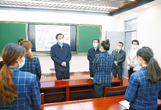 陳全國在調研中指出,要認真貫徹落實習近平總書記重要講話和重要指示精神,增強“四個意識”、堅定“四個自信”、做到“兩個維護”,以對學生、家長、社會高度負責的態(tài)度,堅決把疫情防控和開學復課各項工作抓細抓實抓好,確保安全有序、萬無一失。要強化防控措施,嚴格落實身份核驗、體溫監(jiān)測、佩戴口罩等措施,加強教室、宿舍、餐廳、圖書館等場所通風消毒和衛(wèi)生清潔,堅決防止發(fā)生輸入性、聚集性疫情。要強化校園管理,分區(qū)分片劃小管理網格,精細安排學生錯時上課、合理住宿、分散就餐,科學安排課余時間,避免扎堆聚集;加強宣傳教育和家校溝通,引導學生主動服從管理、增強防范意識。要強化物資保障,充足供應口罩、測溫槍、消毒水等防疫消殺物品,有效保障防控需要。要強化教育教學,改進完善教育教學方案,創(chuàng)新方式、科學安排、優(yōu)化內容、加強指導,確保教學質量不打折扣;統(tǒng)籌做好畢業(yè)年級學生論文答辯、學位申請、就業(yè)創(chuàng)業(yè)等工作,努力做好就業(yè)服務指導工作。要強化應急處置,完善工作預案,常態(tài)化值班值守,全面開展校園安全隱患排查,加強校園食品、消防、實驗室等重點環(huán)節(jié)安全管理,切實守護好校園安全。要強化責任落實,各地和各高校黨委要認真落實屬地責任和主體責任,守土有責、守土擔責、守土負責,黨委書記要嚴格落實第一責任人責任,親力親為親自抓;教育行政部門要統(tǒng)籌謀劃、加強指導;相關部門要各司其職、協(xié)調聯(lián)動;高校黨員干部要真抓實干、落實落細,切實凝聚起統(tǒng)籌做好開學復課和疫情防控的強大合力。