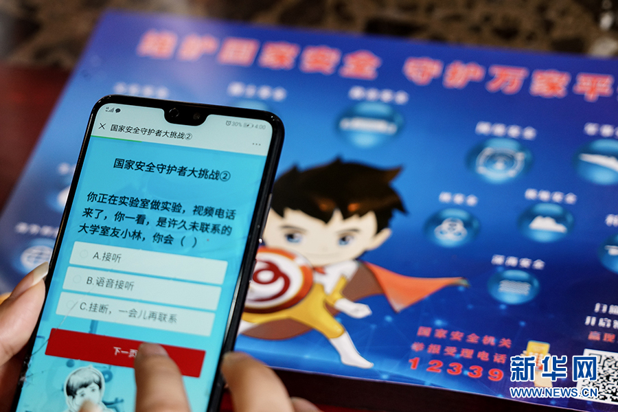 這一游戲程序把“國家安全進(jìn)網(wǎng)絡(luò)”和“國家安全進(jìn)課堂”相結(jié)合,測試內(nèi)容集知識性和趣味性于一體,把國家安全大政方針與人民群眾生產(chǎn)生活可能遇見的風(fēng)險情況有機結(jié)合,以號召廣大人民群眾積極參與到國家安全中來,把國家安全群眾性教育落實落地。新華網(wǎng) 韓夢霖 攝