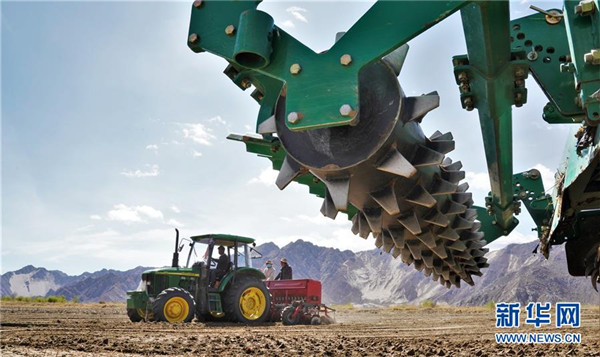 4月22日,西藏拉薩市曲水縣茶巴朗村農(nóng)民利用現(xiàn)代化農(nóng)業(yè)設(shè)備播種“藏青2000”。當(dāng)日,西藏拉薩市曲水縣茶巴朗村進(jìn)行“藏青2000”春播活動(dòng)。西藏是全球唯一大規(guī)模集中種植青稞的地區(qū),也是青稞馴化和多樣化品種的栽培中心。新華社記者普布扎西 攝