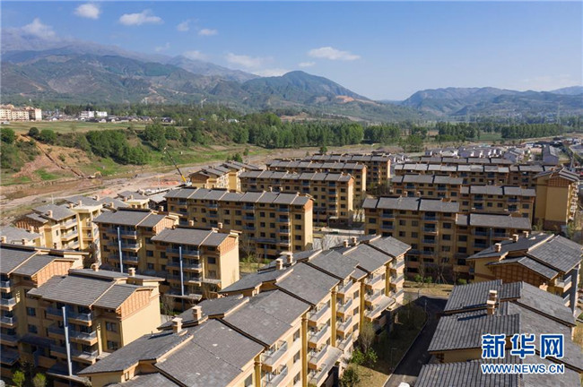 5月10日拍攝的四川省涼山彝族自治州昭覺縣昭美社區(qū)集中安置點(無人機照片)。新華社記者 江宏景 攝