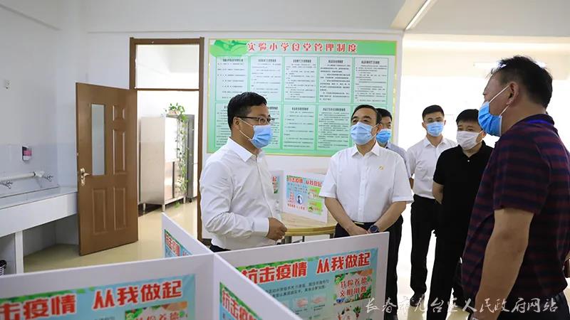 6月16日,長春市九臺區(qū)區(qū)長宋長者帶領(lǐng)區(qū)政府辦、教育局、衛(wèi)健局、市場監(jiān)督管理局等單位負(fù)責(zé)同志深入到區(qū)實驗小學(xué),實地調(diào)研小學(xué)開學(xué)疫情防控工作。