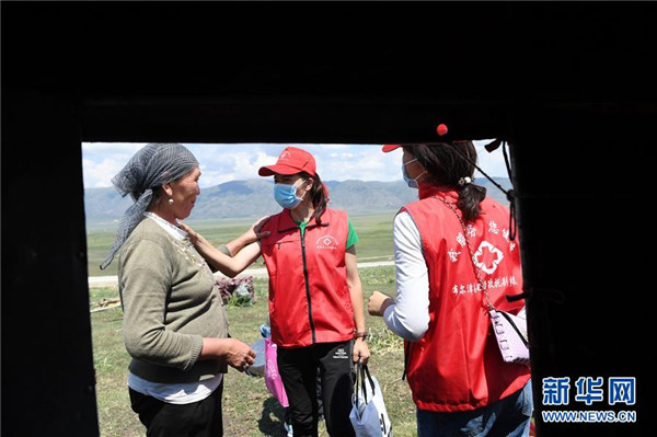 6月20日,新疆阿勒泰地區(qū)布爾津縣也格孜托別鄉(xiāng)克孜勒托蓋村家庭醫(yī)生簽約團隊成員在布爾津縣黑流灘草原進行隨訪服務。圍繞實現(xiàn)人人享有基本醫(yī)療衛(wèi)生服務目標,2016年起,新疆布爾津縣開展家庭醫(yī)生簽約服務工作。該縣組建家庭醫(yī)生簽約團隊65個,團隊醫(yī)務人員233名,通過手機APP、基本公衛(wèi)系統(tǒng)與全縣建檔立卡貧困戶進行電子化簽約,提升村醫(yī)隨訪的工作效率和質(zhì)量。截至目前,已完成簽約42936人,履約40043人。新華社記者沙達提攝