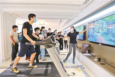 6月24日,華為上海南京東路旗艦店正式開業(yè)。該店一樓是產(chǎn)品體驗(yàn)區(qū),二樓為全場景體驗(yàn)區(qū),分為智能家居、移動辦公、運(yùn)動健康、智慧出行、影音娛樂等五大場景。該店還為消費(fèi)者提供全場景沉浸式互動體驗(yàn)。圖為市民在該店內(nèi)體驗(yàn)智能運(yùn)動產(chǎn)品。王 初攝(人民視覺)