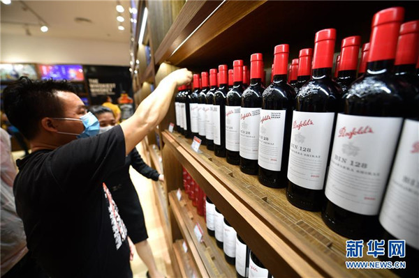 7月1日,顧客在??谌赵聫V場(chǎng)免稅店選購(gòu)酒類商品。當(dāng)日,海南開(kāi)始實(shí)施調(diào)整后的離島免稅購(gòu)物政策。海南離島旅客每年每人免稅購(gòu)物額度提高至10萬(wàn)元,電子消費(fèi)產(chǎn)品等7類新增商品開(kāi)售。新華社記者郭程攝