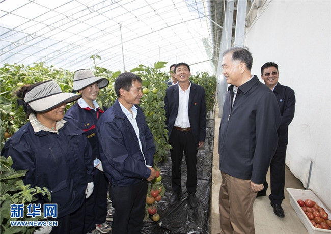 7月6日至8日,中共中央政治局常委、全國(guó)政協(xié)主席汪洋在西藏調(diào)研。這是7月7日,汪洋在日喀則白朗縣察看果蔬種植,與務(wù)工群眾交流。 新華社記者 黃敬文 攝