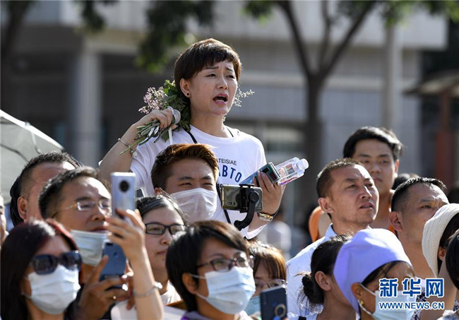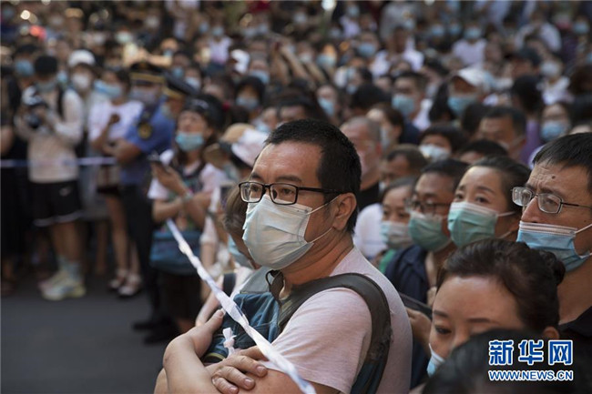 7月8日,在黑龍江省哈爾濱市第三中學考點外,家長們迎接考生。 當日,全國部分地區(qū)2020年高考結(jié)束。 新華社發(fā)(張濤攝)