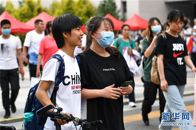 7月8日,考生走出內(nèi)蒙古自治區(qū)呼和浩特市第二中學考點。 當日,全國部分地區(qū)2020年高考結(jié)束。 新華社記者 徐欽 攝