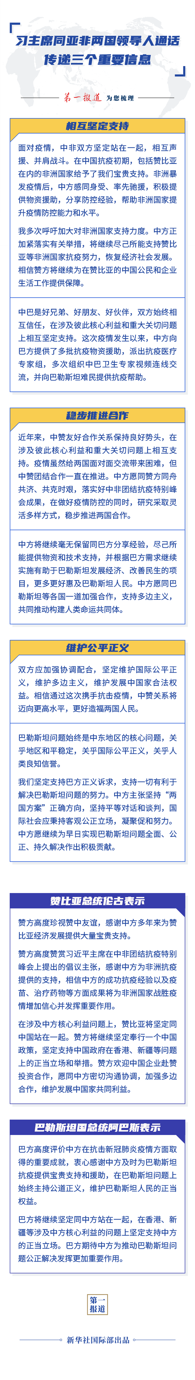 原標題:第一報道|習主席同亞非兩國領導人通話,傳遞三個重要信息