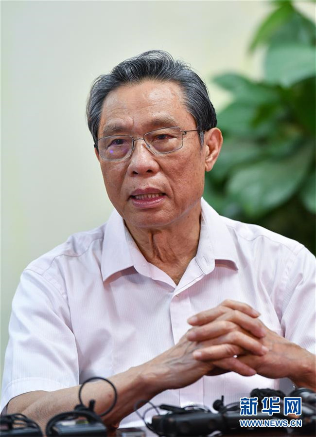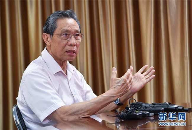 29日在廣州醫(yī)科大學(xué)附屬第一醫(yī)院,中國工程院院士、國家呼吸系統(tǒng)疾病臨床醫(yī)學(xué)研究中心主任、廣州醫(yī)科大學(xué)呼吸內(nèi)科教授鐘南山接受新華社采訪,談對(duì)香港疫情形勢(shì)的判斷,以及對(duì)防控疫情的建議。