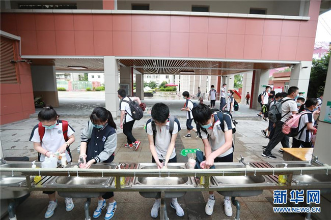 當(dāng)日,武漢初中階段初一、初二年級(jí)返校復(fù)學(xué),至8月30日結(jié)束。 新華社發(fā)(趙軍 攝)