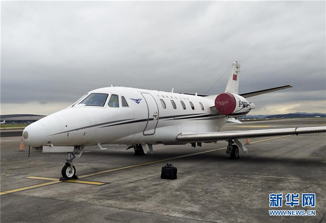 8月13日在重慶江北國際機(jī)場拍攝的仙女山機(jī)場校飛飛機(jī)(手機(jī)拍攝)。新華社發(fā)(重慶機(jī)場集團(tuán)供圖)