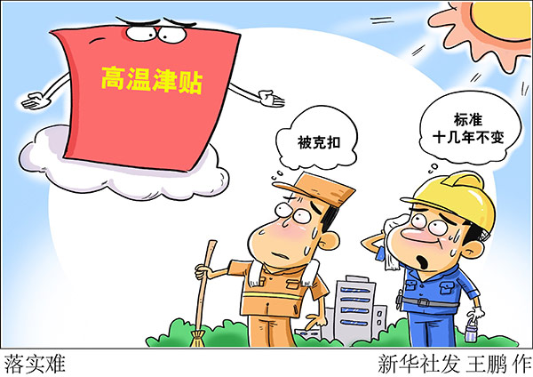 記者發(fā)現(xiàn),自防暑降溫措施管理辦法2012年印發(fā)以來,各地都制定了高溫津貼標準,發(fā)放有了政策保障。但一些地區(qū)標準多年不變,一些地方標準過于復雜,有的還按實際溫度區(qū)別發(fā)放,影響具體的執(zhí)行操作。