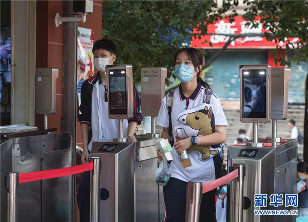 9月1日,武漢中學(xué)的學(xué)生進(jìn)入校園。當(dāng)日,武漢市2842所中小學(xué)、幼兒園迎來(lái)開(kāi)學(xué),涉及學(xué)生139.9萬(wàn)人,百萬(wàn)學(xué)子重返校園。新華社記者肖藝九攝