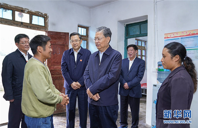 這是9月14日,趙樂際來(lái)到畢節(jié)市威寧縣格書村,走訪慰問貧困戶。 新華社記者 張領(lǐng) 攝