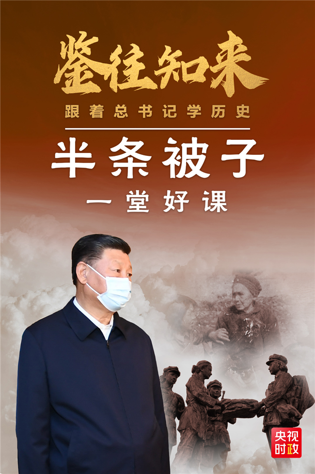 這次實地考察沙洲村,總書記多次談到這個故事的啟示。在專題陳列館,他說,“半條被子的故事”體現(xiàn)了中國共產(chǎn)黨人的初心和本色,當年紅軍在缺吃少穿、生死攸關(guān)的時候,還想著老百姓的冷暖,真是一枝一葉總關(guān)情!老百姓也由此理解了什么是中國共產(chǎn)黨領(lǐng)導(dǎo)的人民軍隊。