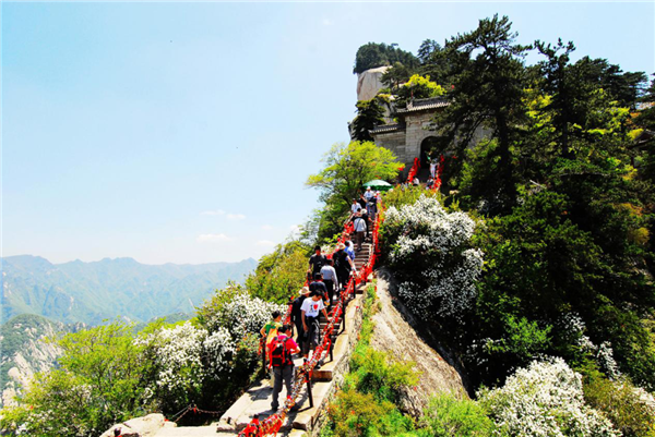 除了險(xiǎn)峻秀麗的自然風(fēng)光,華山的人文特色也讓人神往。西岳廟、云臺觀、玉泉院、鎮(zhèn)岳宮、玉女祠、全真觀、圣母殿、毛女祠、煉丹爐和巨靈祠所代表的道教文化,秦始皇、武則天、乾隆皇帝多次“駕幸及此”、“駐蹕憑眺”華山留下的摩崖石刻更是中華民族的文化隗寶。