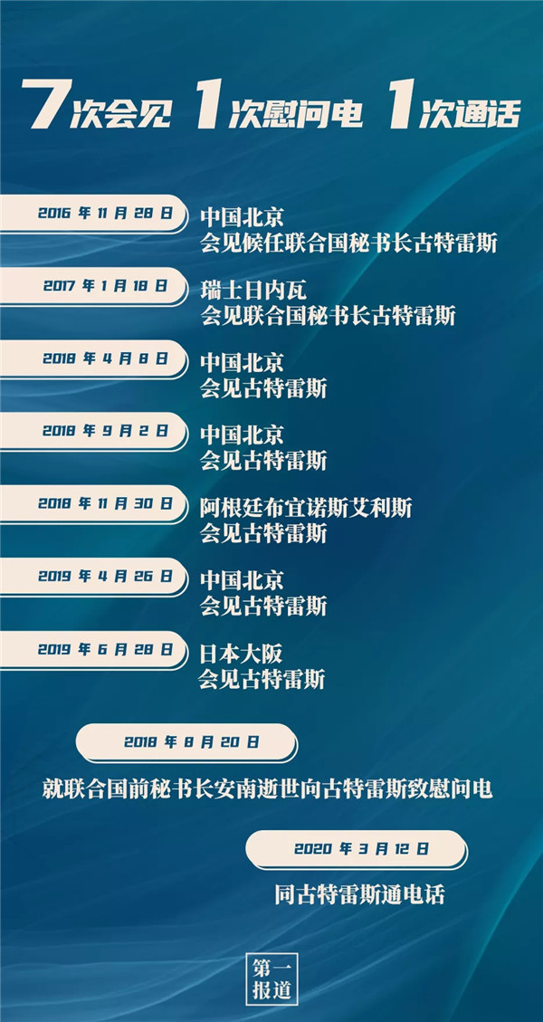 其中,習(xí)主席同聯(lián)合國(guó)“掌門人”的交往互動(dòng)最為頻繁,截至目前,習(xí)主席已7次會(huì)見(jiàn)聯(lián)合國(guó)秘書(shū)長(zhǎng)古特雷斯。今年,在全球暴發(fā)新冠疫情的特殊情況下,習(xí)主席還通過(guò)“電話外交”同古特雷斯保持溝通交流: