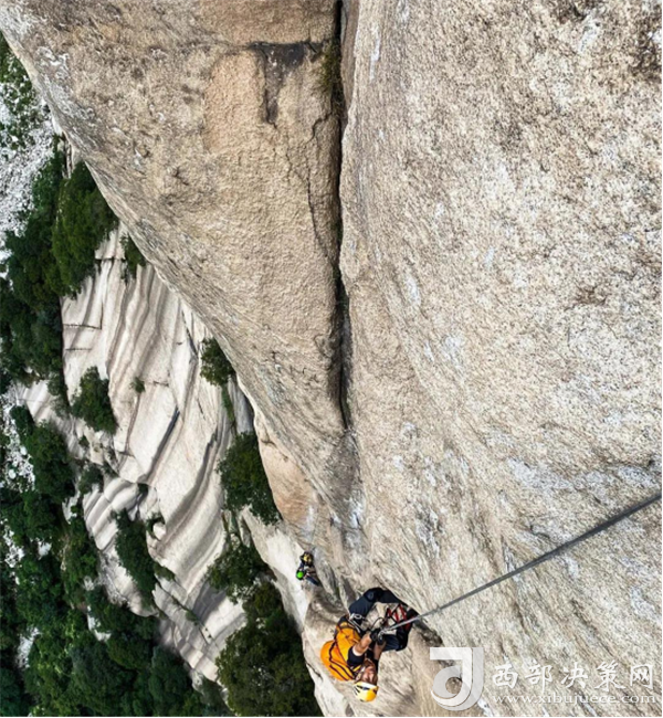 自然巖壁結(jié)組攀登源自軍事特戰(zhàn)項(xiàng)目,它就像是巖壁上的“馬拉松”,攀登大巖壁路線,攀巖隊(duì)伍需要使用吊帳和拖包等更多安全裝備完成多日攀登。從最基礎(chǔ)的攀登動(dòng)作練習(xí),到完成近千米的大巖壁攀登,這不僅將考驗(yàn)運(yùn)動(dòng)員們的攀巖技術(shù),還要挑戰(zhàn)他們?cè)趲r壁上的生存能力。此次自然巖壁結(jié)組攀登的巖壁甄選白云峰,其位于華山北峰云臺(tái)峰之北,石白如雪,一年四季白云繚繞,隨云飄浮而升降起伏,如海中的大魚隨浪翻滾,極其壯觀,而攀巖隊(duì)員們此次就需要在這600多米高的巖壁線路上生活至少2天。