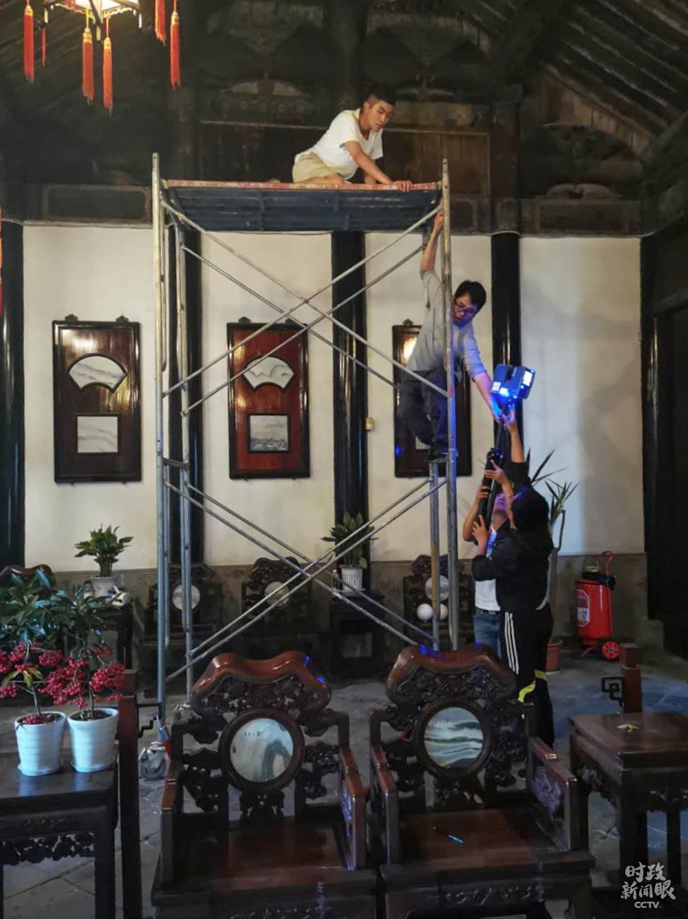 △北大考古文博學(xué)院學(xué)生架設(shè)三維掃描儀,開展文物建筑考古與測試實(shí)習(xí)。