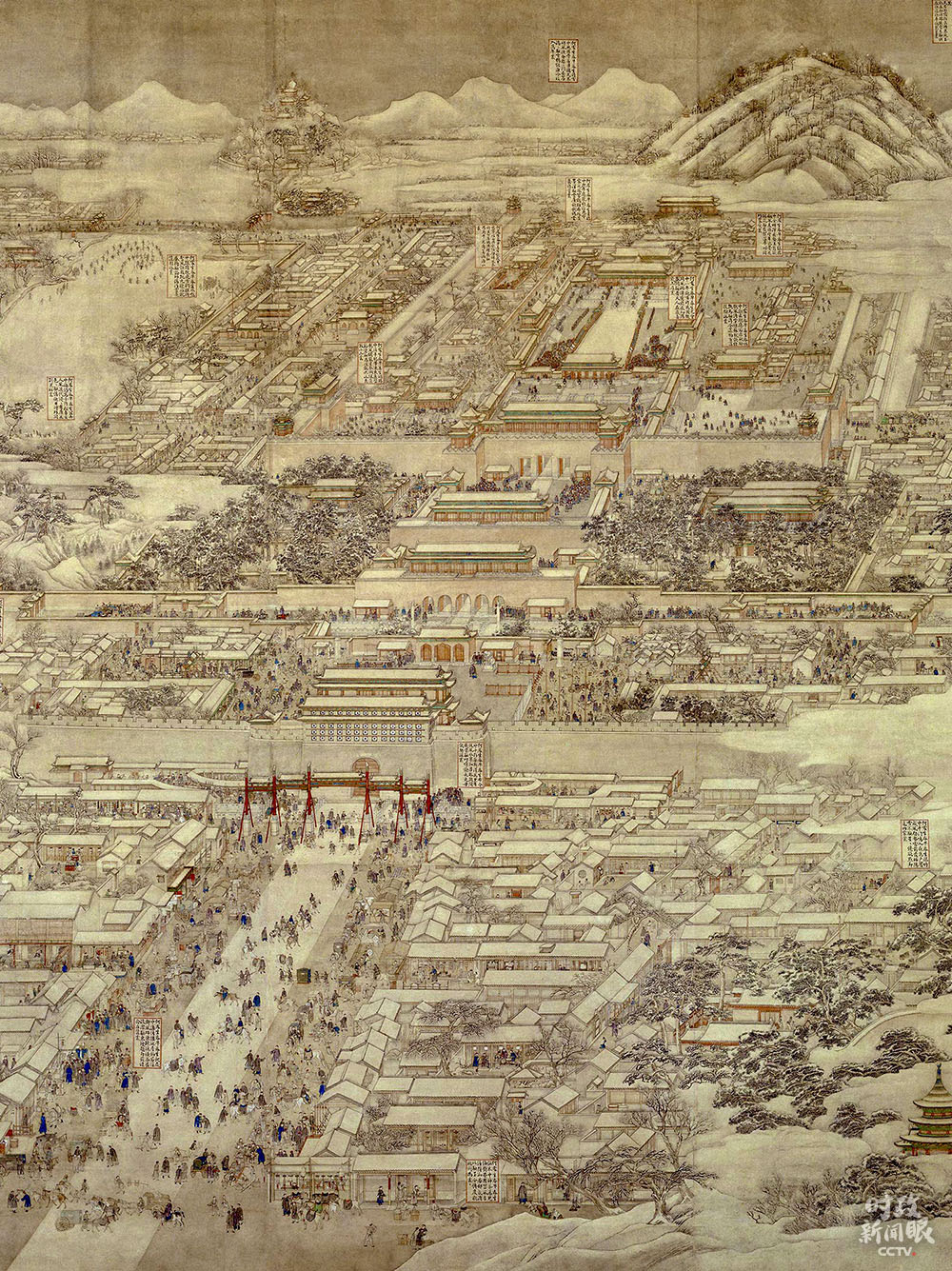 △這是《京師生春詩意圖》軸,由清代宮廷畫家徐揚(yáng)繪制。從上至下的鳥瞰式構(gòu)圖,為后人研究北京城城建布局提供了寶貴參考。(來源于故宮博物院官網(wǎng))