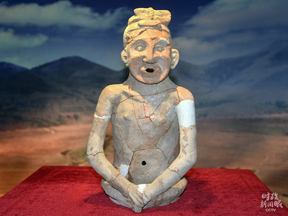 △這是修復(fù)后的整身紅山文化陶人,人像通高55厘米。這尊寫實(shí)人像距今約5300年,是中華五千年文明的一個(gè)實(shí)證。