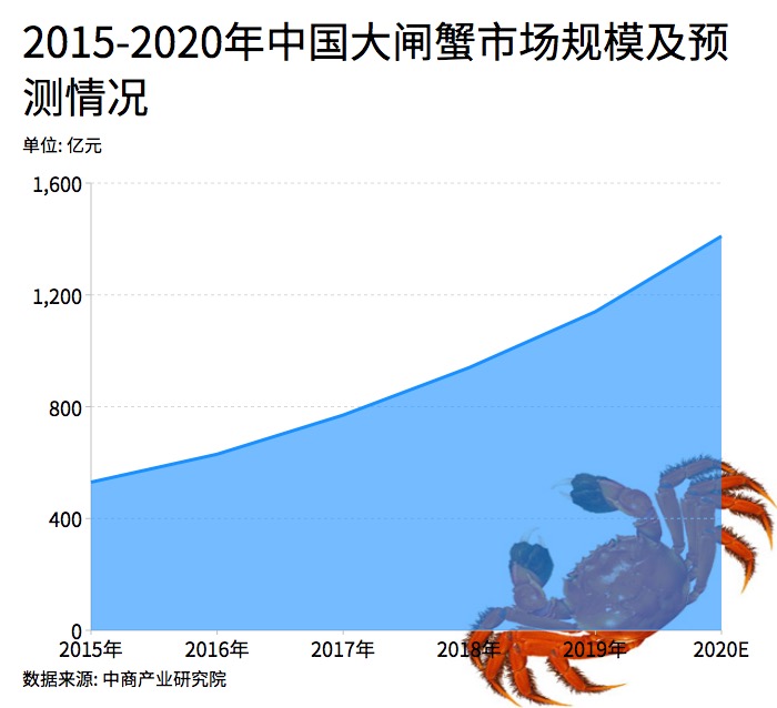 大閘蟹又被稱為中華絨螯蟹,分布在我國北起遼河南至珠江,其中以長江水系產(chǎn)量最大。近年來隨著消費者對大閘蟹的喜愛程度的提高,其市場需求不斷增長。據(jù)相關(guān)數(shù)據(jù)統(tǒng)計2018年大閘蟹產(chǎn)量高達80萬噸左右,產(chǎn)業(yè)規(guī)模2019年突破億元,年增速約20%。據(jù)預(yù)測,到2020年我國大閘蟹市場規(guī)模或接近1500億元。