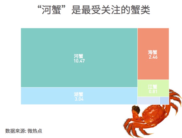 在“吃貨”眼里,占據(jù)C位的仍是最著名的“中華絨螯蟹”,也就是人們俗稱的“大閘蟹”。在“不同蟹類網(wǎng)絡(luò)關(guān)注度調(diào)查”中,大閘蟹名列前茅,緊隨其后的是梭子蟹和青蟹 。