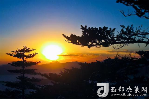 華山日出亦被列為華山自然風(fēng)光中的重要景觀之一。是時(shí),但見夜幕自東方悄然隱退,晨曦初露,漸漸霞光瑰麗,云源奔涌。瞬間,一輪火球噴薄而出,繼而光芒四射,氣象萬(wàn)千,整個(gè)世界大放光明,游人身心為之一振。待云霧散盡,蒼松翠柏,則更加清麗悅目,美妙神奇。故而,游名山者必登華山,登華山者必觀日。