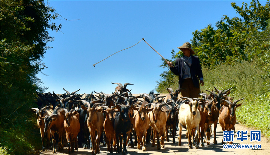 在云南省彌勒市東山鎮(zhèn)舍母村委會(huì)小橫山村,當(dāng)?shù)乩蒙鷳B(tài)草場(chǎng)優(yōu)勢(shì)大力發(fā)展生態(tài)羊養(yǎng)殖,戶均養(yǎng)殖100多只,成為村民們的致富新手段。(10月11日攝)。新華網(wǎng)發(fā)(普佳勇 攝)