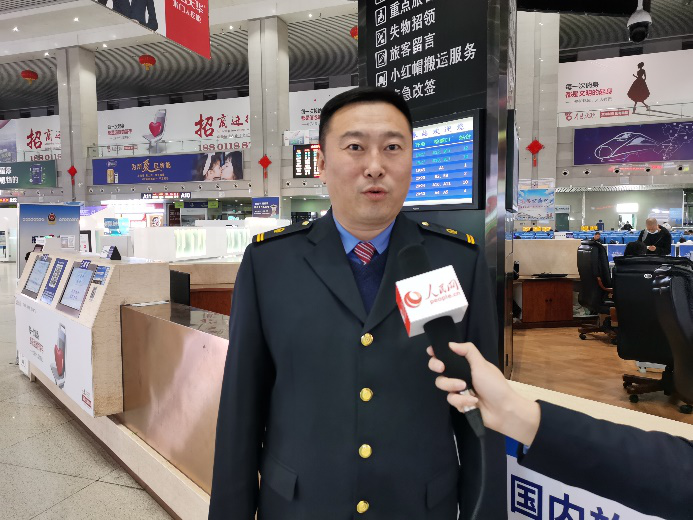 長(zhǎng)春站客運(yùn)車間值班站長(zhǎng)趙宇接受人民網(wǎng)采訪。人民網(wǎng) 王帝元攝