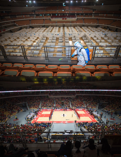 拼版照片上圖:3月8日,武漢體育中心方艙醫(yī)院送走最后一批痊愈患者,正式休艙。隨后,艙內(nèi)進行全面消毒工作。這是志愿者在進行消殺作業(yè)。下圖:10月4日,武漢體育中心方艙醫(yī)院休艙后舉行首場大型賽事。新華社記者 肖藝九 攝