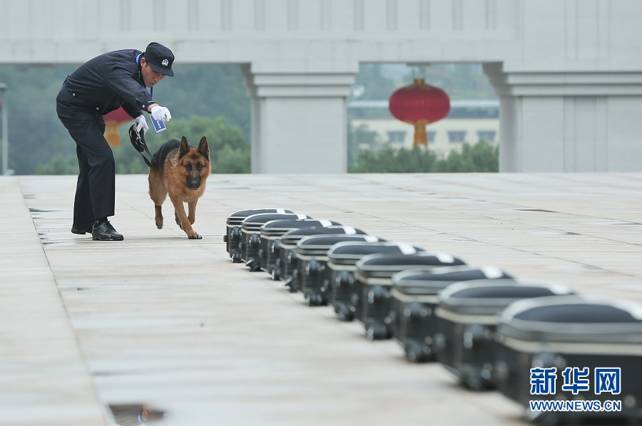 箱包搜爆項目中,警犬正在搜尋。新華網(wǎng)發(fā)