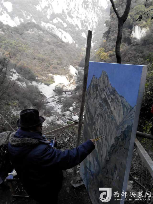 值得提起的是,田學(xué)森在華山十年,每幅畫都是在現(xiàn)場揮筆完成。美術(shù)界有些常用的省時(shí)省力的畫法,田學(xué)森都不喜歡去做。他喜歡與畫框共同經(jīng)歷自然環(huán)境的時(shí)間和空間,為千古華山寫照,表達(dá)對華山的感悟和敬意。他說,“華山是頂天立地的脊梁,我們每個(gè)人走的路,都是尋脈的過程。”