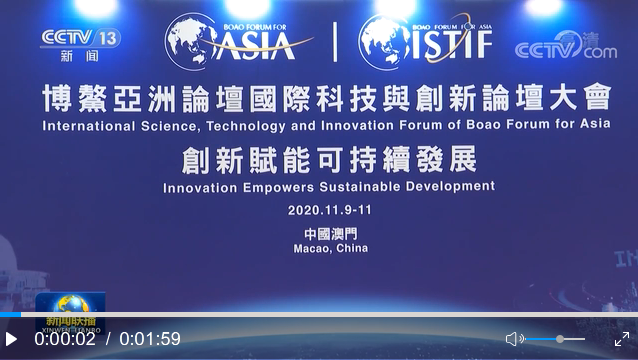 11月10日,博鰲亞洲論壇國(guó)際科技與創(chuàng)新論壇首屆大會(huì)開幕式在澳門舉行。中共中央政治局常委、國(guó)務(wù)院副總理韓正以視頻方式發(fā)表主旨演講?!⌒氯A社記者 丁林 攝