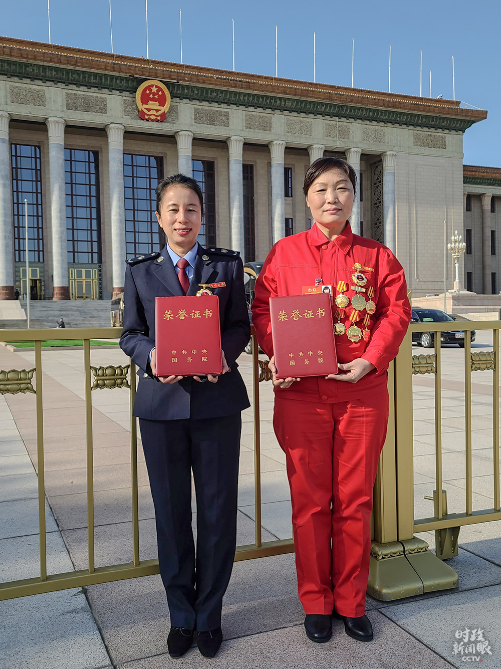 △全國(guó)勞動(dòng)模范劉麗(右)與全國(guó)先進(jìn)工作者劉雙燕(左)(總臺(tái)央視記者趙化拍攝)