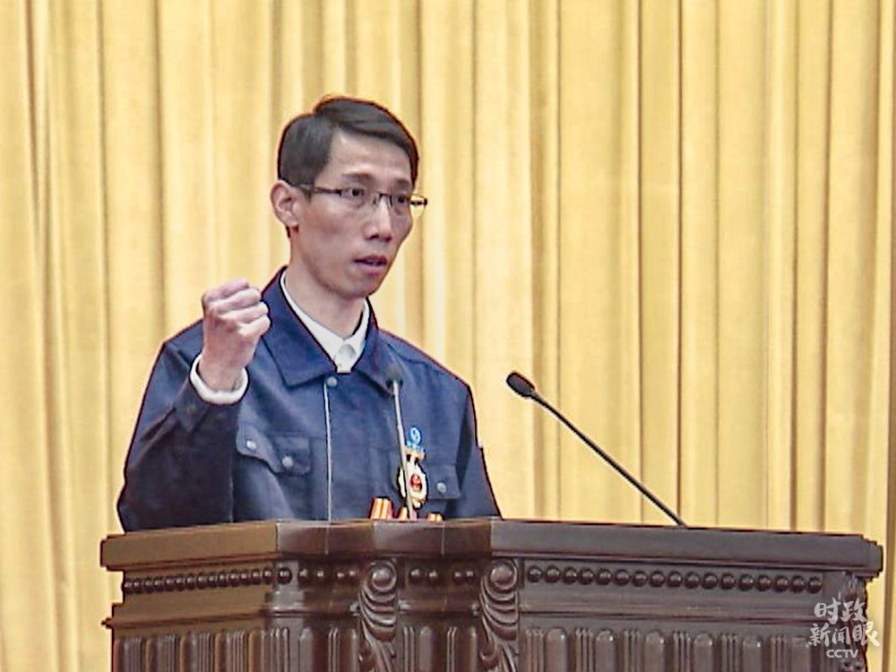 今年獲得全國(guó)勞動(dòng)模范稱(chēng)號(hào)的洪家光,代表所有受表彰者上臺(tái)宣讀倡議書(shū)。