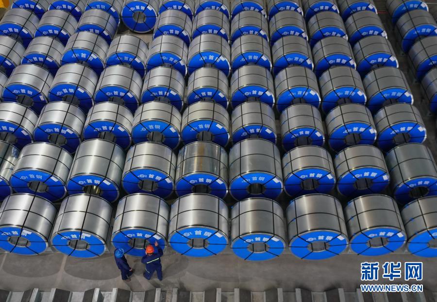 5月22日,工人在河北省遷安市首鋼遷鋼高端汽車板生產(chǎn)車間成品區(qū)工作。新華社記者 楊世堯 攝