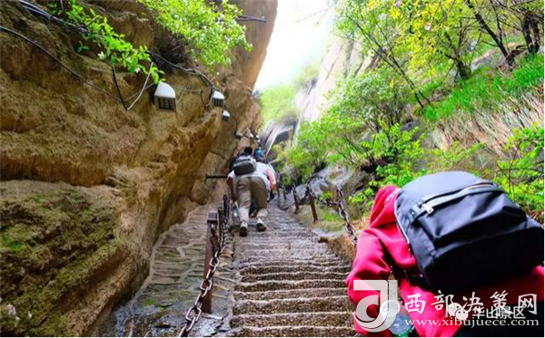 對于登山者來說,首先親密接觸到的便是華山奇險兼?zhèn)涞纳铰?。一路行去,必經諸多絕險要道,才可飽賞華山之險,因此登華山的這條路從古至今都大名鼎鼎。三面臨空的鷂子翻身更是華山道的險中之險,登山者經過時,須如鷹鷂一般左右翻轉身體才能得以通過,身臨其境,相信它的鬼斧神工會讓你嘆為觀止。