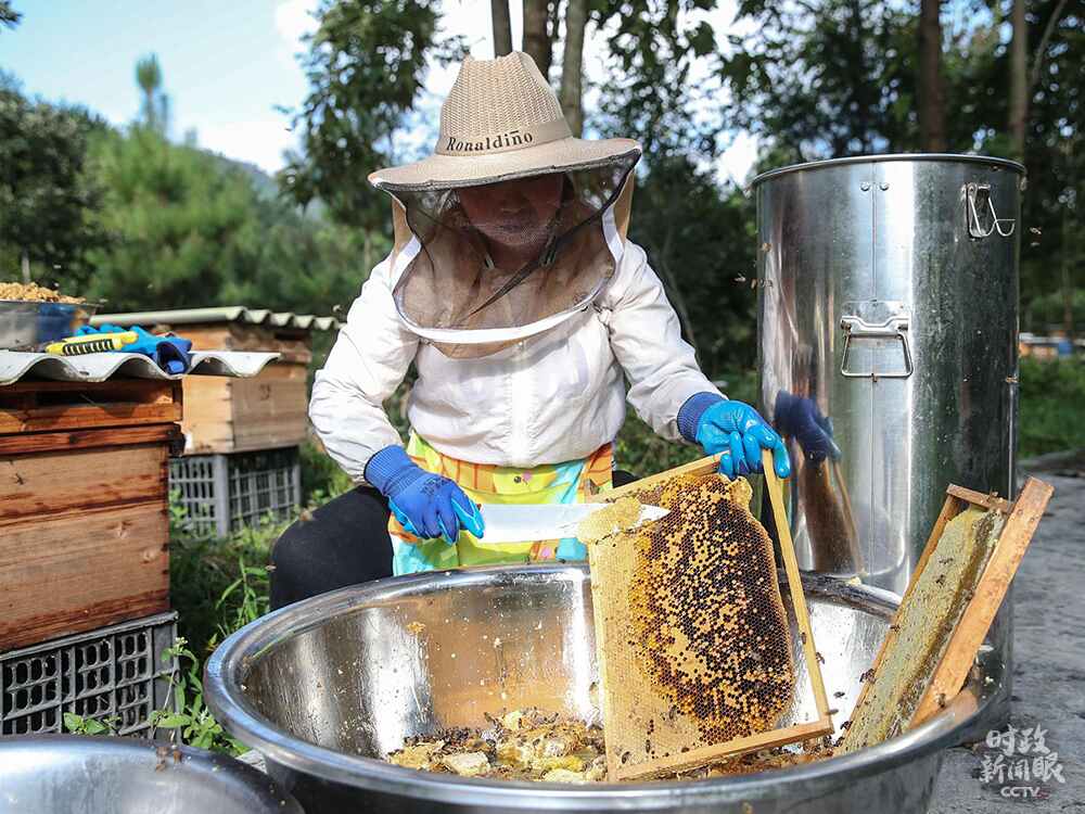 △11月23日,貴州宣布最后9個(gè)深度貧困縣退出貧困縣序列,標(biāo)志著我國(guó)新時(shí)代脫貧攻堅(jiān)目標(biāo)任務(wù)如期完成。這是貴州9個(gè)深度貧困縣之一的紫云縣村民發(fā)展“林下蜂”產(chǎn)業(yè),收割蜂蜜。