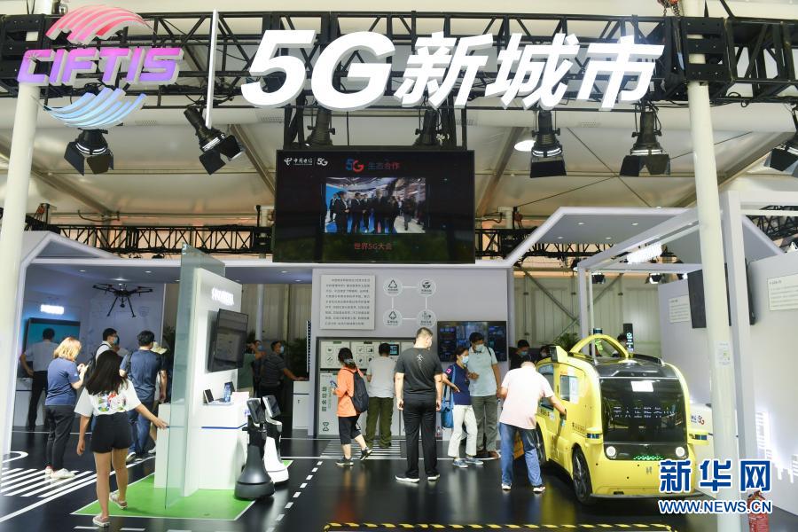 9月7日,觀眾在2020年中國(guó)國(guó)際服務(wù)貿(mào)易交易會(huì)5G通信服務(wù)專(zhuān)題展區(qū)參觀。2020年中國(guó)國(guó)際服務(wù)貿(mào)易交易會(huì)9月4日至9日在北京舉行。新華社記者 魯鵬 攝
