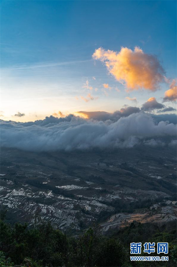 這是1月6日傍晚拍攝的哈尼梯田(無人機照片)。