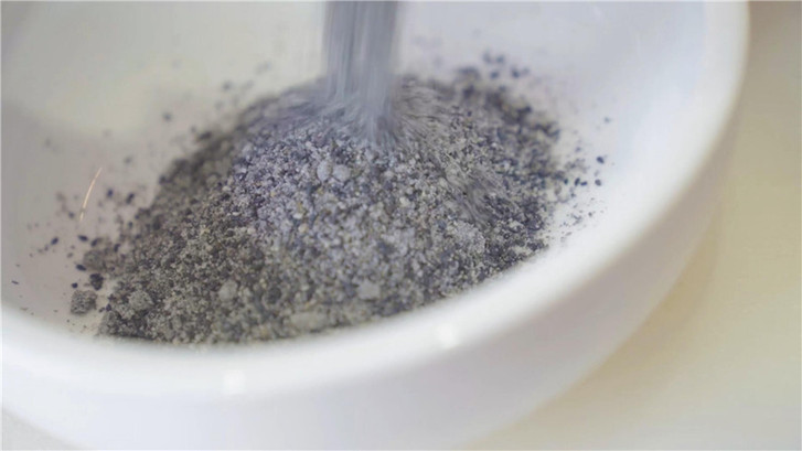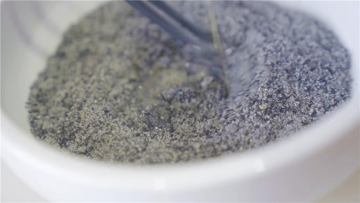 將炒熟的黑芝麻加入白砂糖放入研磨機。